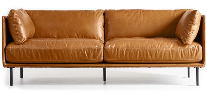 Modern Wells updates the classic leather sofa with a thin, slightly contoured frame, matte black legs and a comfortable, cushy sit.
