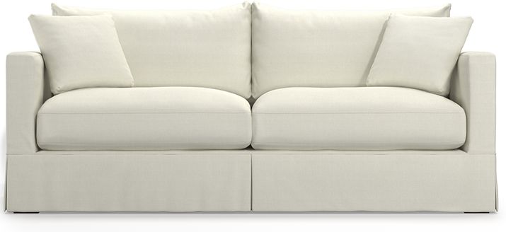 This sofa is perfect for a smaller space and is very comfortable. The fabric is lovely and the color goes well with almost anything.