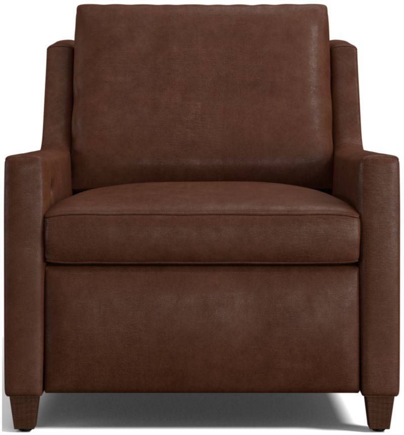 Luxe leather takes the recliner to another level in Toro. Styled with slim, slope arms and a generous pillow back, the chair provides refined style along with serious comfort. The buttery leather enhances the appeal, proudly displaying its natural markings and coaxed into luxury with a coat of wax to unify the color and lend a smooth finish. Operated with two buttons on the inside arm, the chair uses "wall-hugging" technology to recline with zero clearance and no space restrictions, allowing you to position the chair right up against a wall if desired.