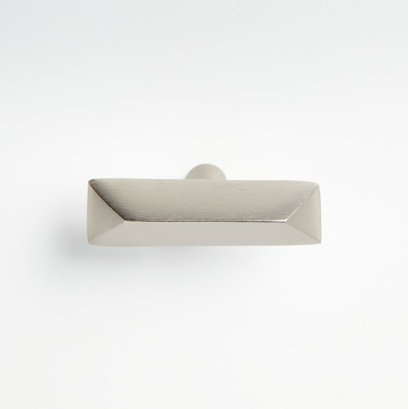 Shaped like a prism and finished in brushed nickel, our triangular hardware puts a geometric spin on kitchen or bathroom cabinetry. Whether you're doing a full remodel, want a quick update or simply give a refresh to a favorite piece of furniture, the knob gives cabinets and drawers a fresh, modern look. The easy-to-install knob coordinates with matching handles in three sizes and can be mounted horizontally or vertically.