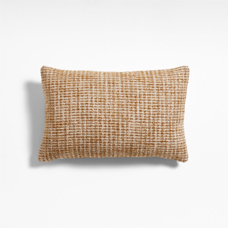 Weaving together white, ocher and taupe, our Tricote pillow cover embodies the classic chic of a designer tweed suit. The richly textured boucle fabric lends a coppery note to neutral pillow assortments and is especially lovely when teamed up with Athena's other throw pillows. Fill our exclusive lumbar cover with a plush feather-down or lofty down-alternative insert sold separately.