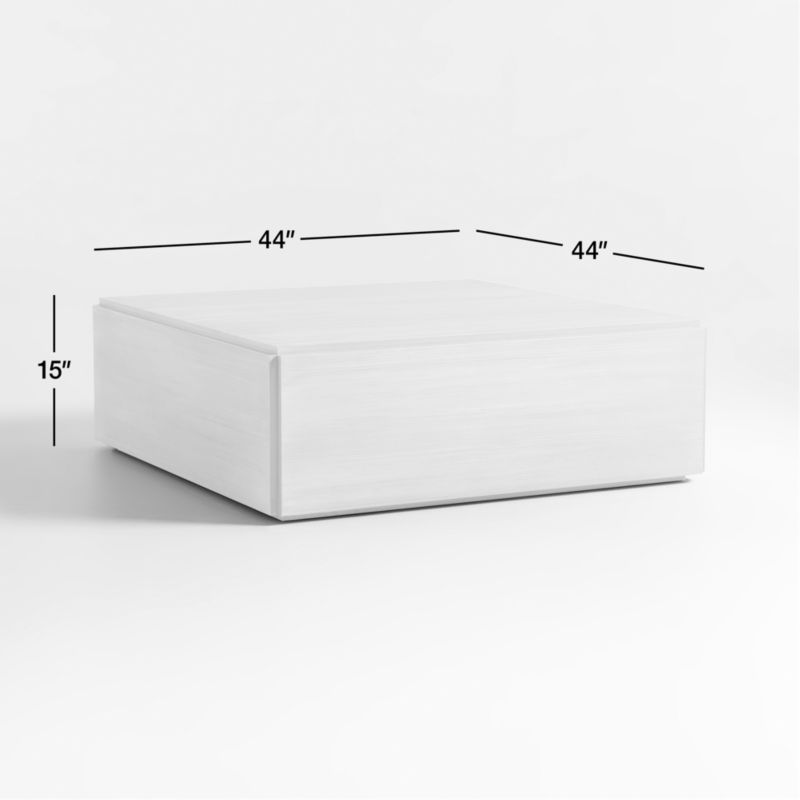 There's more than meets the eye in Troupe's deceptively simple box-like design. Full of woodworking details in sustainably sourced pine, the square coffee table features flat-paneled sides that meet in bird-beak joints, bringing dimension and vertical interest to all four corners. Composed of quarter-sawn planks of pine veneer, the panels showcase linear graining that's enhanced with wirebrushing and an ivory ceruse finish. A recessed plinth base lets our exclusive coffee table float in a room.