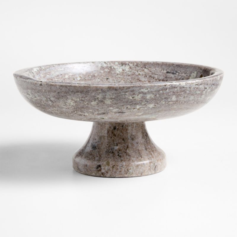 Our Tuscan kitchen collection brings home the rustic warmth and organic beauty of central Italy. Softly neutral yet statement-making, luxurious beige marble shape a stunning pedestal bowl. The fascinating material refreshes the traditional silhouette, while the semi-matte finish keeps the look sleek and timeless. Fill the footed bowl with bread rolls for a grand presentation or with fruits for a still life-worthy centerpiece. Subtle variations in hues, veining and texture make each hand-finished marble bowl uniquely gorgeous.