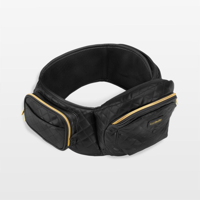 Carry your little one more comfortably with Tushbaby's ergonomic hip seat. Simple and strap-free, it features a supportive belt designed to evenly distribute baby weight for parents. Covered in easy-clean black quilted vegan leather, the memory foam-lined seat also optimizes hip health and comfort for babies. The seat's large storage pocket can hold diapers, wipes, and changing essentials. The smaller side pockets are perfect for tucking away keys, phones and wallets, while the loops can be used for attaching toys and sanitizer. (In other words, this conveniently machine-washable baby carrier holds pretty much everything you need to leave the house.)