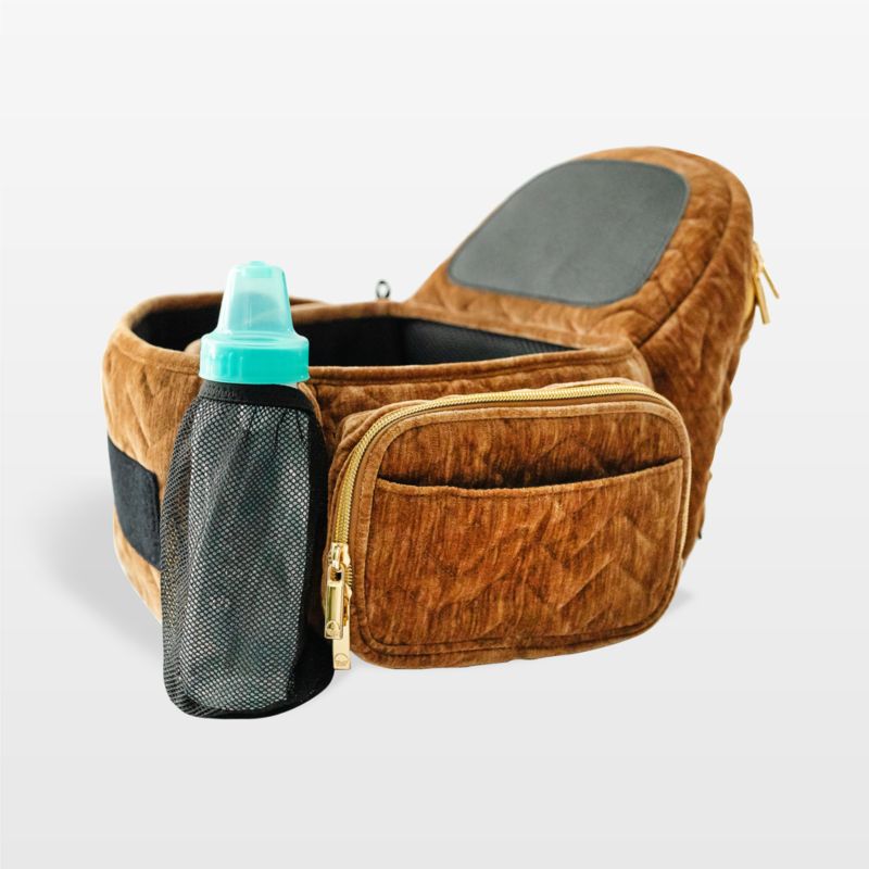 Carry your little one more comfortably with Tushbaby's ergonomic hip seat. Simple and strap-free, it features a supportive belt designed to evenly distribute baby weight for parents. Covered in warm sable velvet with a subtle chevron pattern, the memory foam-lined seat also optimizes hip health and comfort for babies. The seat's large storage pocket can hold diapers, wipes, and changing essentials. The smaller side pockets are perfect for tucking away keys, phones and wallets, while the loops can be used for attaching toys and sanitizer. (In other words, this conveniently machine-washable baby carrier holds pretty much everything you need to leave the house.)