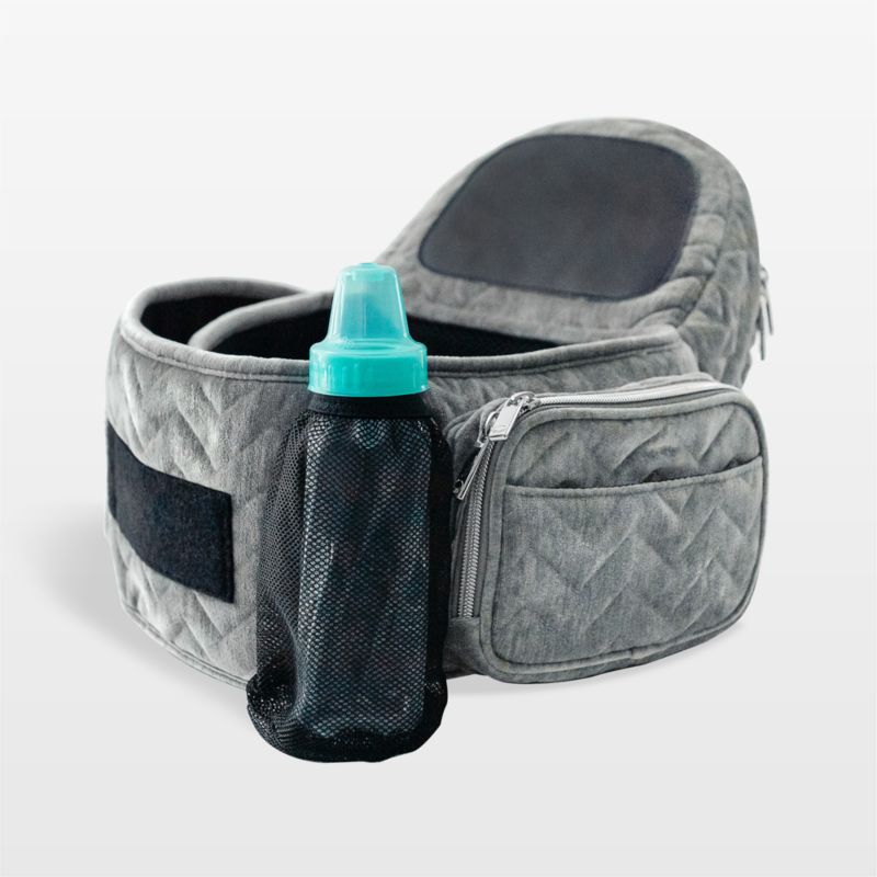 Carry your little one more comfortably with Tushbaby's ergonomic hip seat. Simple and strap-free, it features a supportive belt designed to evenly distribute baby weight for parents. Covered in silver velvet with a subtle chevron pattern, the memory foam-lined seat also optimizes hip health and comfort for babies. The seat's large storage pocket can hold diapers, wipes, and changing essentials. The smaller side pockets are perfect for tucking away keys, phones and wallets, while the loops can be used for attaching toys and sanitizer. (In other words, this conveniently machine-washable baby carrier holds pretty much everything you need to leave the house.)