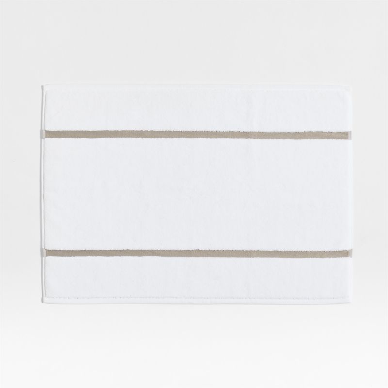 Our tuxedo towel collection dresses up your bathroom for a chic and put-together look. Inspired by timeless formal wear, two beige embroidered stripes detail this organic cotton bath mat. Sandy embroidery contrasts warmly with the bright white, densely looped terrycloth for an indulgent mat that looks sophisticated and feels irresistibly soft and absorbent. Pair with the coordinating towels for an impeccably tailored and always-in-style bathroom.