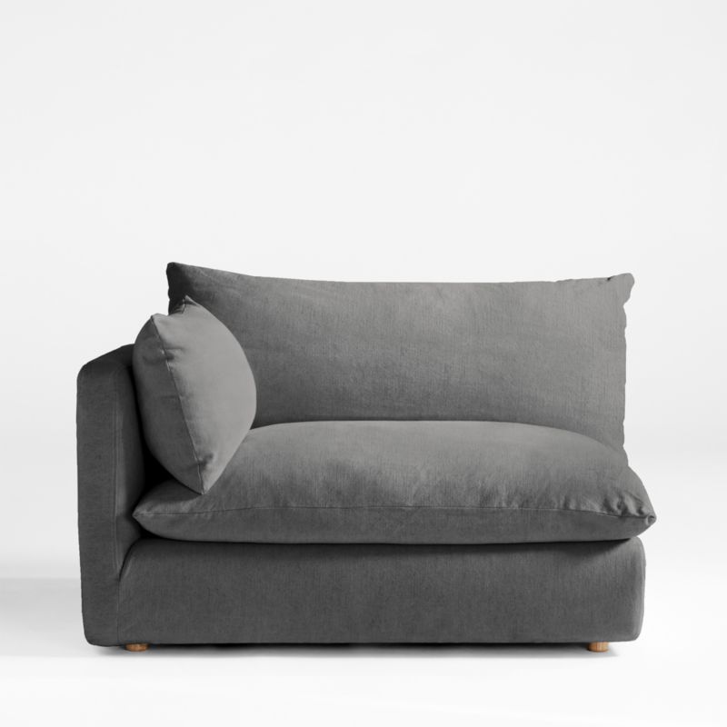It's time to Unwind with our coastal-cool slipcovered sectional collection. Named after our favorite thing to do, this modern beauty delivers with sumptuous sink-in cushions and relaxing proportions. Designed to coordinate with other Unwind sectional pieces, the left-arm slipcovered chair features a slim arm and low deck that make room for pillowy back and seat cushions for an exceptionally deep and comfortable sit. We love the natural feel and slubby texture of the slipcovers, made of a breezy blend of cotton, linen and viscose yarns.