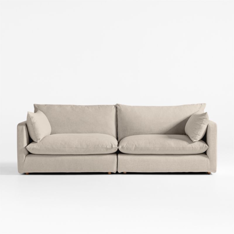 It's time to Unwind with our coastal-cool slipcovered sectional collection. Named after our favorite thing to do, this modern beauty delivers relaxing proportions and sumptuous sink-in cushions. Comprising left- and right-arm chairs, the two-piece sectional features slim arms and low decks that make room for pillowy back and seat cushions for an exceptionally deep and comfortable sit. Slipcovers in a durable yet soft cotton-linen blend keep the look breezy and chill.