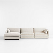 It's time to Unwind with our coastal-cool slipcovered sectional collection. Named after our favorite thing to do, this modern beauty delivers with sumptuous sink-in cushions and relaxing proportions. Consisting of an armless chair flanked by right- and left-hand chairs plus two ottomans, the five-piece sectional features slim arms and low decks that make room for pillowy back and seat cushions for an exceptionally deep and comfortable sit. We love the natural feel and slubby texture of the slipcovers, made of a breezy blend of cotton, linen and viscose yarns.
