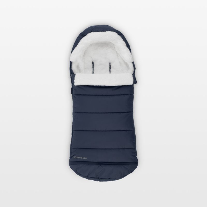Bundle up baby for cold-weather walks with the ultra-plush UPPAbaby® CozyGanoosh Stroller Footmuff, a must-have accessory designed to fit all UPPAbaby strollers and RumbleSeats. The navy blue footmuff features a supersoft fleece interior that keeps baby warm, and the machine-washable fabric is a bonus for parents. The windproof and water-repellent design grows with your little one, thanks to an adjustable hood that rolls over the back of the stroller and a zip-out extension that provides a longer length and extra foot space when needed.