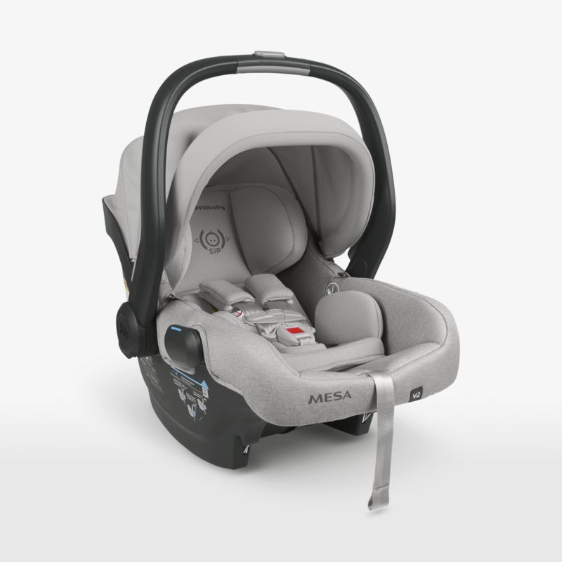 In updating one of the most popular car seats on the market, the UPPAbaby Mesa V2 car seat is better than ever. Easy to install and enhanced with numerous safety features, its intuitive design allows parents to use the carrier with confidence. A streamlined, low-profile base connects to vehicle seat in minutes through a simple-to-use retracting LATCH system and indicator window to confirm correct installation. Secure baby in the grey car seat, lock the carrier into place, and you're ready to ride. Protective features include side impact protection, a larger adjustable headrest, and no-rethread harness that adjusts as the child grows. It's a good fit for baby too: an integrated, larger canopy shields little faces from the sun, while the newly updated infant insert cradles newborns as small as 4 pounds. Take it from the car to the Uppababy Vista or Cruz stroller (sold separately) for a car-to-sidewalk transition that's as convenient as the rest of the car seat experience.