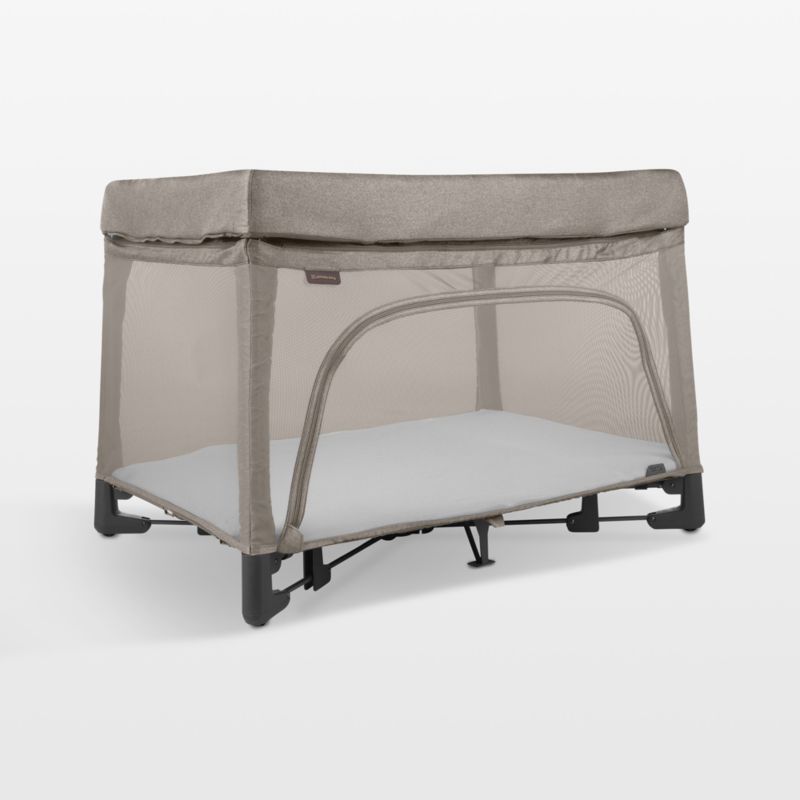 The UPPAbaby® REMI portable play yard and crib creates a place to rest at home or on the go. The lightweight structure sets up and breaks down in seconds with just one hand, with a zip-open access panel and mesh sides for air flow and visibility. Zip on the included bassinet for newborns; zip it off for a deeper place to play. The washable triple-layer mattress is made from air mesh to help regulate baby's temperature, and it comes with a cotton mattress cover for extra softness. Durable fabric wraps around the top rail for added comfort, and each piece neatly fits within a convenient storage bag when it's time to move along.