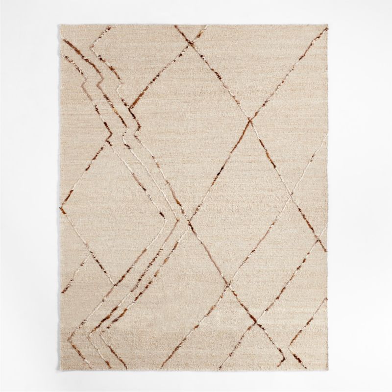 A contemporary take on traditional Moroccan patterns, our exclusive Vail rug weaves an abstract lattice pattern of raised lines intersecting over a nubby backdrop. Highly skilled artisans craft the geometric rug, weaving the natural fibers by hand to produce exaggerated textures with three-dimensional appeal. Showcasing colors inherent to natural wool, the subtle variations in the caramel brown and cream hues contribute to the rug's depth. We adore dynamic yet understated Vail's rich texture and minimal shedding in the dining room, bedroom or home office.