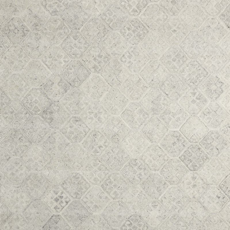 A tonal rug that highlights its interlocking diamonds and swirls through high-low textural effect,