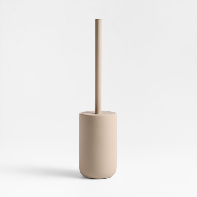 Our Varick bathroom collection dips sturdy ceramic in soft-touch, sand-hued silicone that feels soft and luxurious. The gentle, minimalist curves and compact scale suit even the smallest powder room, guest bath or en suite. Subtly tinted in a muted caramel color that's warm yet modern, this silicone-coated toilet brush with matching handle elevates a cleaning essential. Outfit bathrooms in all of our Varick accessories to create serene sanctuaries that are ready for company.