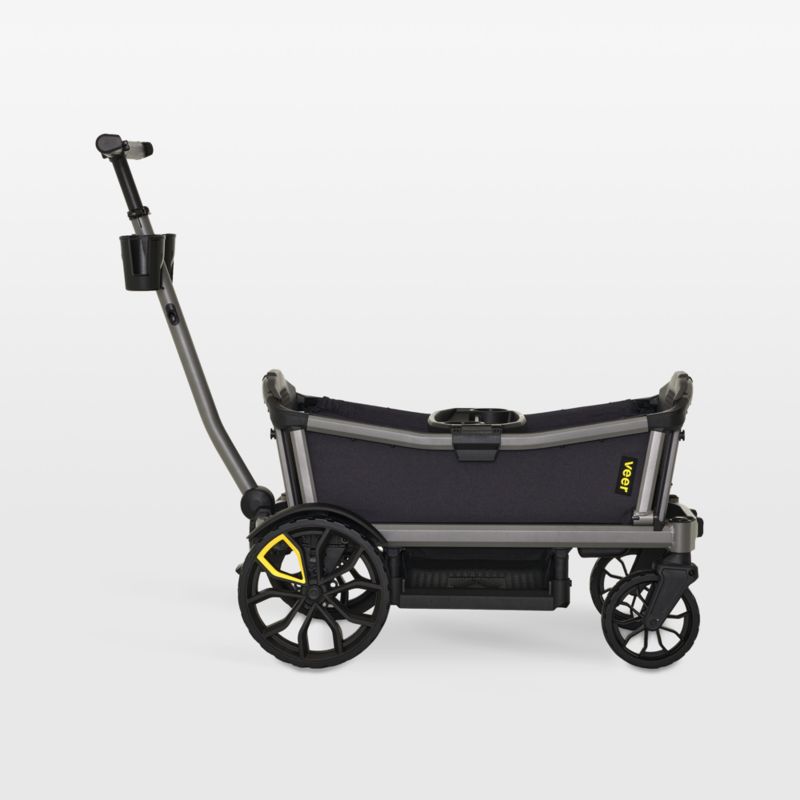 A newborn or a pair of toddlers, steep park trails or busy sidewalks—the Veer® Cruiser City Baby Wagon is ready for anything and everything. The wagon combines all-terrain performance with the easy movement of a premium stroller. It can be pushed on smooth terrain, thanks to front swivel wheels, or pulled like a wagon over rougher terrain. It's built to evolve with your family, too: It accommodates an infant car seat, fits two kids in comfy contoured seats (complete with a snack and drink tray) or converts into a handy wagon for hauling whatever you need. Water-resistant, stain-resistant fabric gives it durability through all of life's adventures.