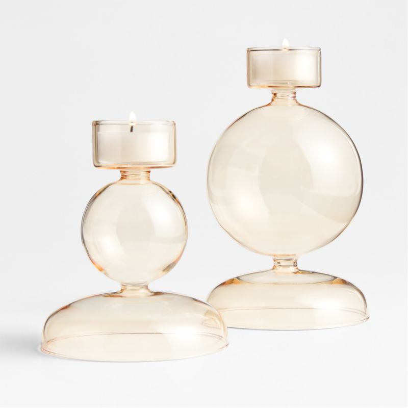 Inspired by mid-century modern glassware, our Venezia tealight holders swell to exuberant bubbles for a sculptural-yet-playful silhouette. Hand-blown of palest yellow glass that reminds us of chilled champagne, the candle holders cradle tealights or double as bud vases. Mix and match our exclusive Venezia candle holders in various heights and hues to create an extravagant effect on your dining table or mantel.