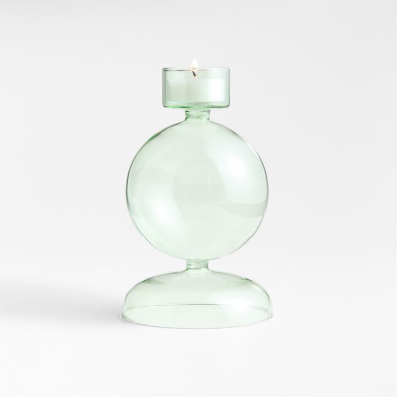 Inspired by mid-century modern glassware, our Venezia tealight holder swells to an exuberant bubble for a sculptural-yet-playful silhouette. Hand-blown of translucent glass in smoky green for a vintage look, the large candle holder cradles a tealight or doubles as a bud vase. Mix and match our exclusive Venezia candle holders in various heights and hues to create an extravagant effect on your dining table or mantel.