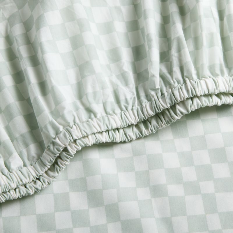 Organic cotton fabric makes our Venice crib fitted sheet a soft, breezy choice for your little one. Playful checks pattern the fitted sheet for a timeless yet kid-friendly look in an elevated color story. For a coordinated nursery, add the other pieces in our exclusive bedding collection.