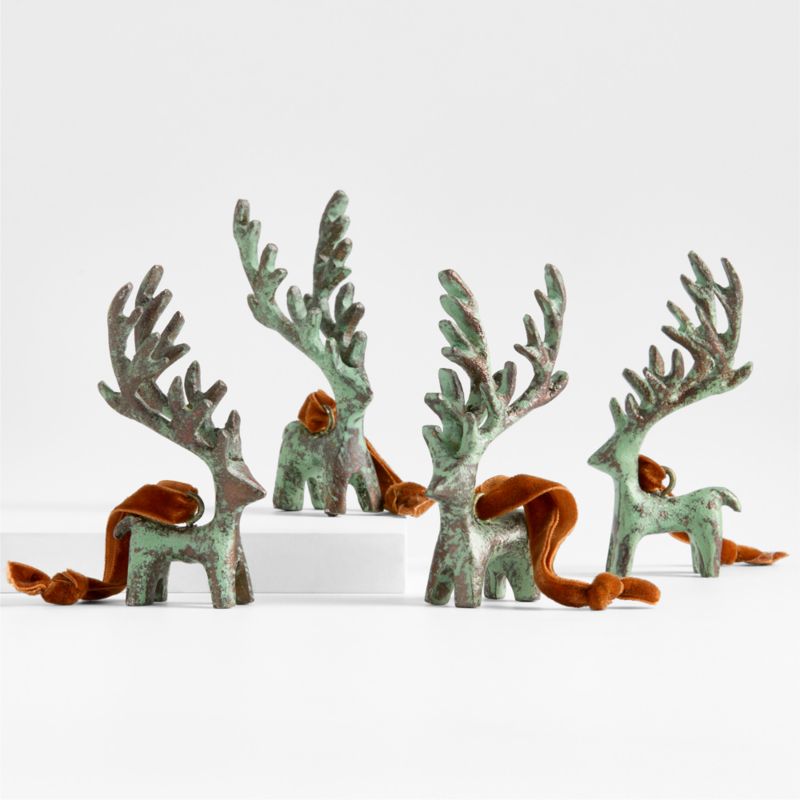 Verdigris Deer Christmas Tree Ornament Set of 4