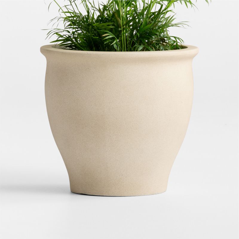 Coastal cool in sun-baked sandy hue, our Veridia planter is the perfect way to refresh the look of outdoor container plantings or indoor houseplants. Handcast of a durable mix of fiberglass, cement and sand, the planter complements colorful blooms or verdant greenery with subtle curves and an urn-like silhouette.
