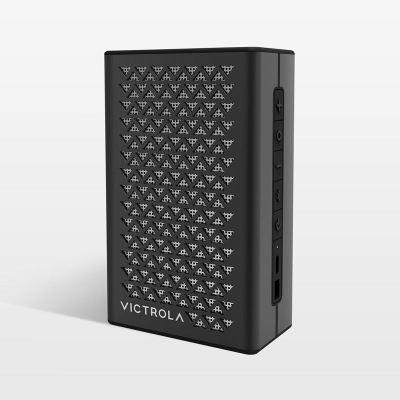 Victrola blends understated vintage styling with modern technology in this display-worthy portable speaker. Clad in black metal, the waterproof and dustproof Bluetooth speaker plays music, podcasts and more indoors or outside. A full charge provides up to 12 hours of playback, and two speakers can be linked for stereo sound. Powerful with a passive bass radiator, this petite and ultra-portable speaker adds ambiance wherever you bring it.