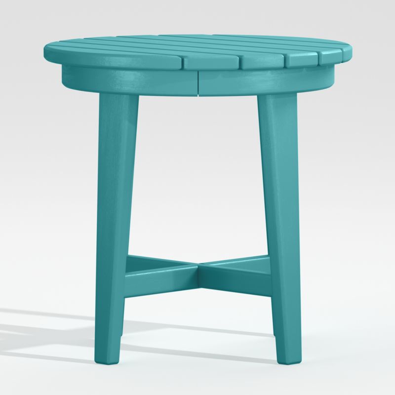 With its x-base and slatted top, this side table complements the iconic style of our Vista Adirondack chair. But the best part about Vista's exclusive design is the super-durable POLYWOOD® construction—a proprietary blend of plastics that's weather- and UV-resistant. Built to last (and last), the Caribbean blue side table partners with the coordinating chair to provide a ready landing spot for an icy-cold drink.