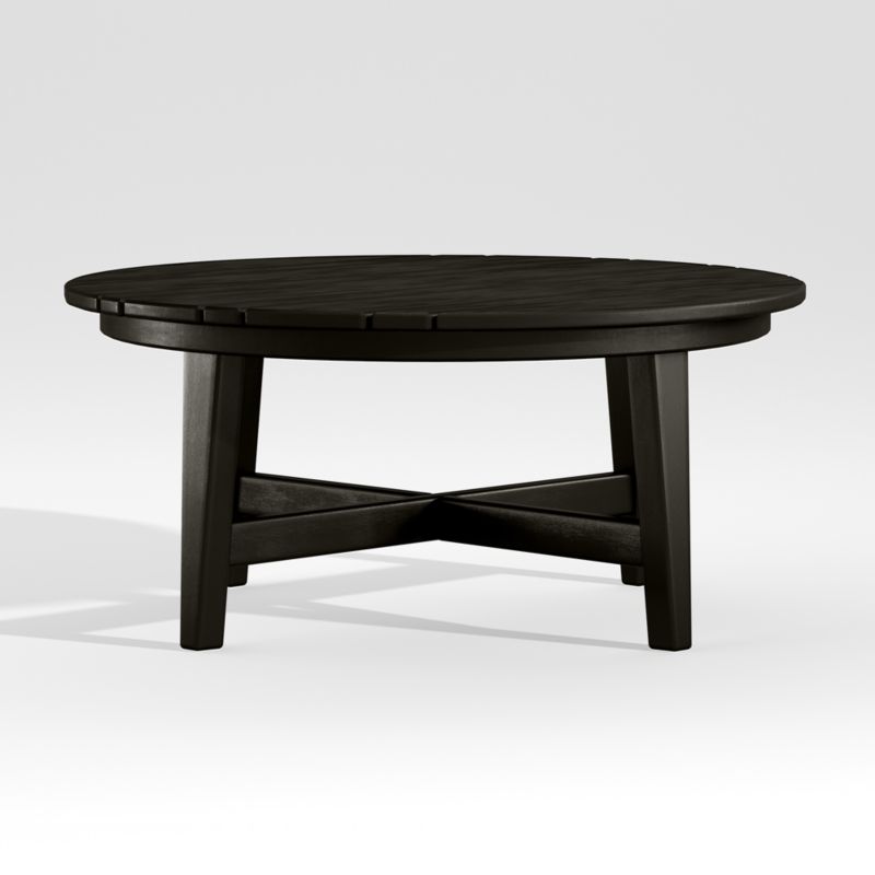 Like its partner the Vista II Adirondack chair, this classic coffee table is made of plastic bottles. The table's strong legs, x-base and slatted top add to its iconic style. The Vista II Adirondack Coffee Table is a Crate and Barrel Exclusive.