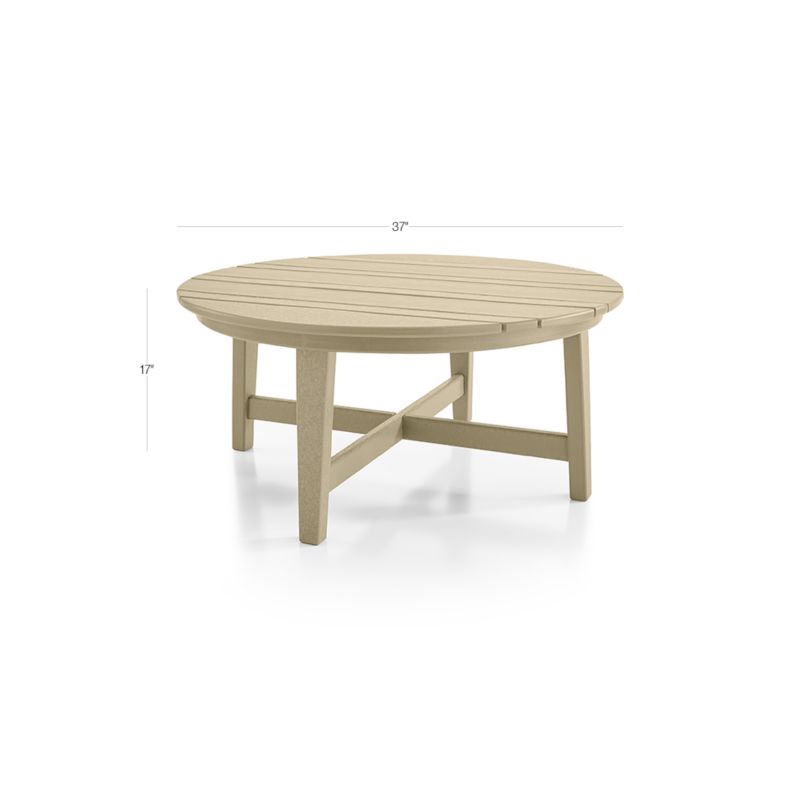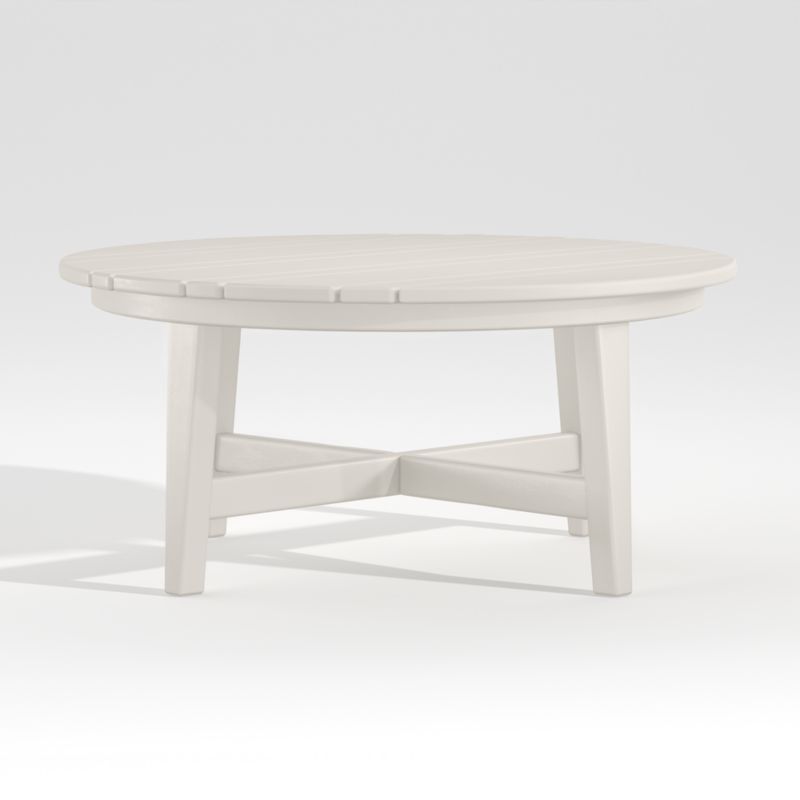 Like its partner the Vista II Adirondack chair, this classic coffee table is made of plastic bottles. The table's strong legs, x-base and slatted top add to its iconic style. The Vista II Adirondack Coffee Table is a Crate and Barrel Exclusive.