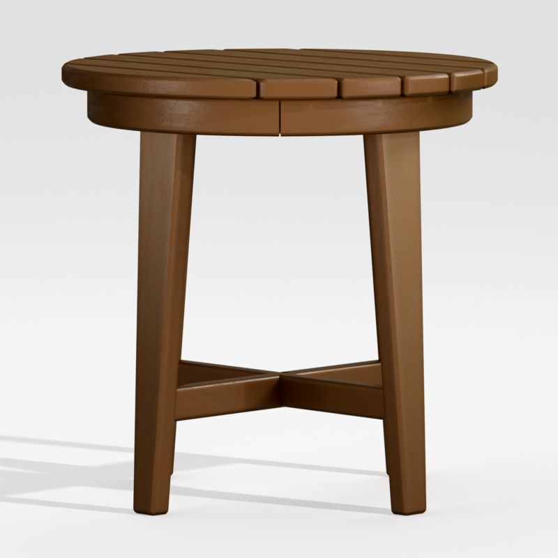 With its x-base and slatted top, this side table complements the iconic style of our Vista Adirondack chair. But the best part about Vista's exclusive design is the super-durable POLYWOOD® construction—a proprietary blend of plastics that's weather- and UV-resistant. Built to last (and last), the teak-inspired brown side table partners with the coordinating chair to provide a ready landing spot for an icy-cold drink.