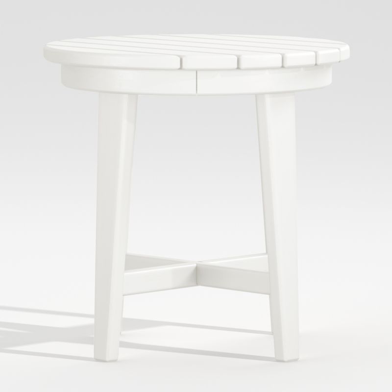 With its x-base and slatted top, this side table complements the iconic style of our Vista Adirondack chair. But the best part about Vista's exclusive design is the super-durable POLYWOOD® construction—a proprietary blend of plastics that's weather- and UV-resistant. Built to last (and last), the white side table partners with the coordinating chair to provide a ready landing spot for an icy-cold drink.