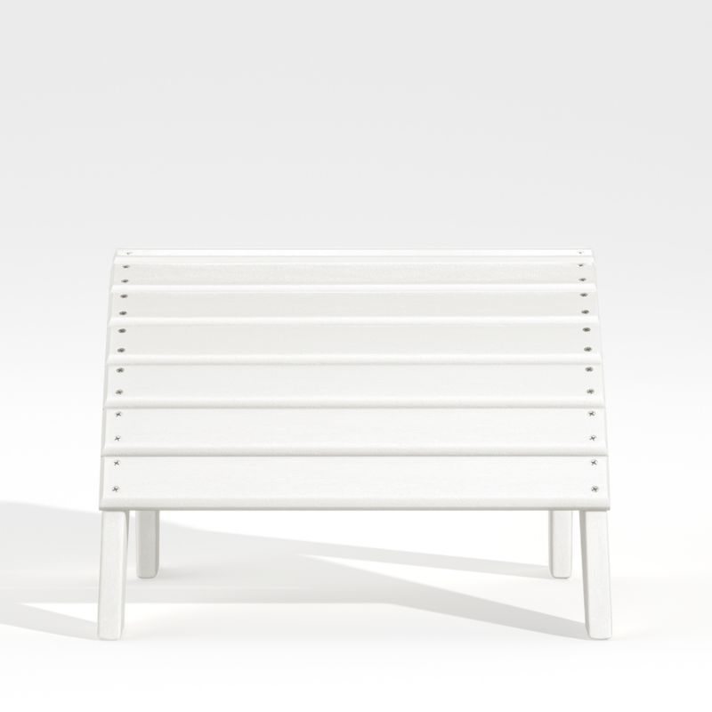 Slatted and sloped, our Vista ottoman props up feet for the ultimate in outdoor lounging. But the best part about Vista's exclusive design is the super-durable POLYWOOD® construction—a proprietary blend of plastics that's weather- and UV-resistant. Built to last (and last), the classic white ottoman pulls up to the coordinating chair as a blissful retreat all season long.
