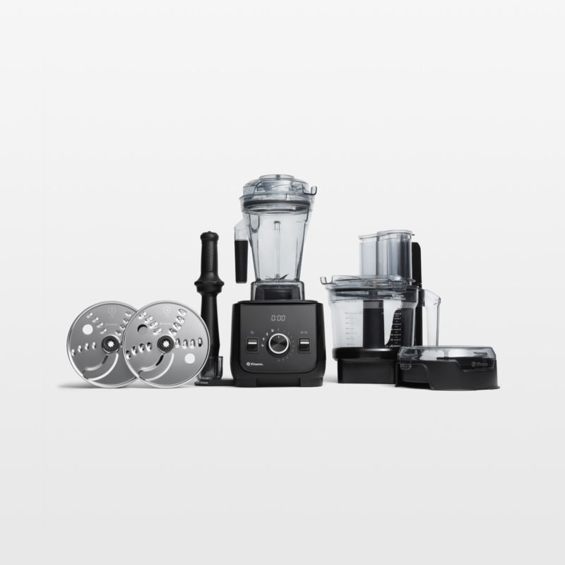 Part blender, part food processor, Vitamix brings its signature power and performance to this two-in-one kitchen appliance. The blender effortlessly transforms ingredients into smoothies, soup, nut butters and more. Switch out the container and add on the food processor attachment with your choice of discs to chop, slice and dice your way through all kinds of food prep. Variable speed control allows you to refine texture from the chunkiest salsas to the smoothest purees. A built-in digital time helps take the guesswork out of recipes.