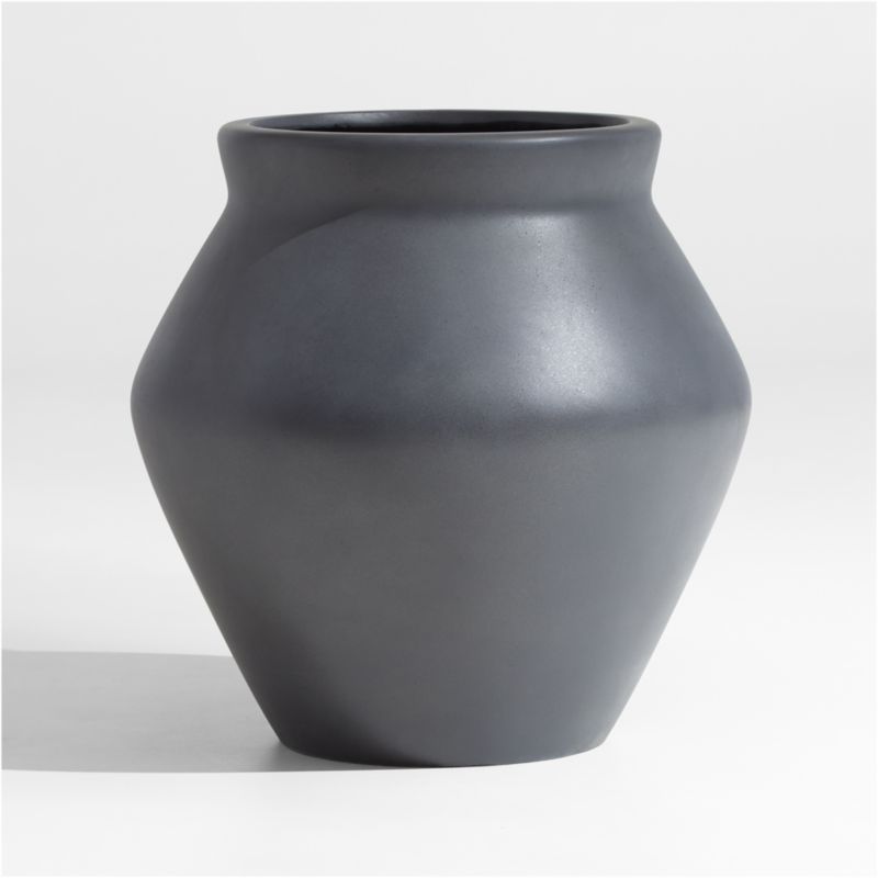Resembling traditional storage jars, our Wabi planter streamlines a classic shape for a look that's clean and contemporary. The slate grey planter's rounded bicone shape suits container plantings of flowers and trailing greens and lends modern refinement to patios, decks and balconies. Made of a mix of cement, sand and fiber, the medium planter—also available in small and large—is lightweight, durable and frost-resistant.