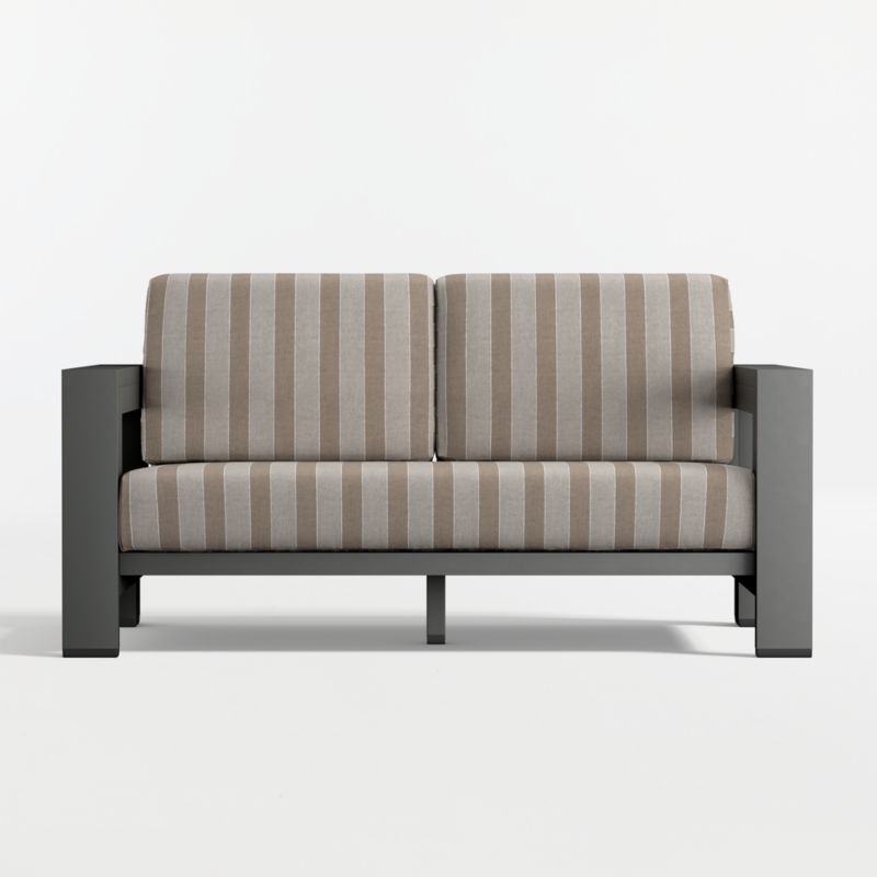 Walker 63" Metal Outdoor Loveseat with Range Dune Stripe Sunbrella ® Cushions