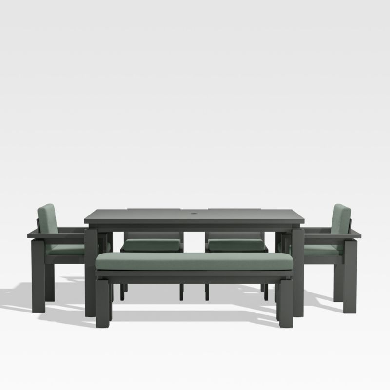 Walker 68" Metal Outdoor Dining Table Set with Canvas Spa Blue Sunbrella ® Cushions