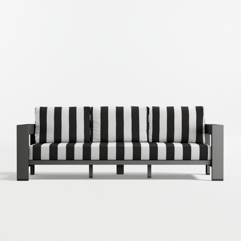• View Walker 90" Metal Outdoor Sofa with Black and White Cabana Stripe Sunbrella ® Cushions - image 3 of 16