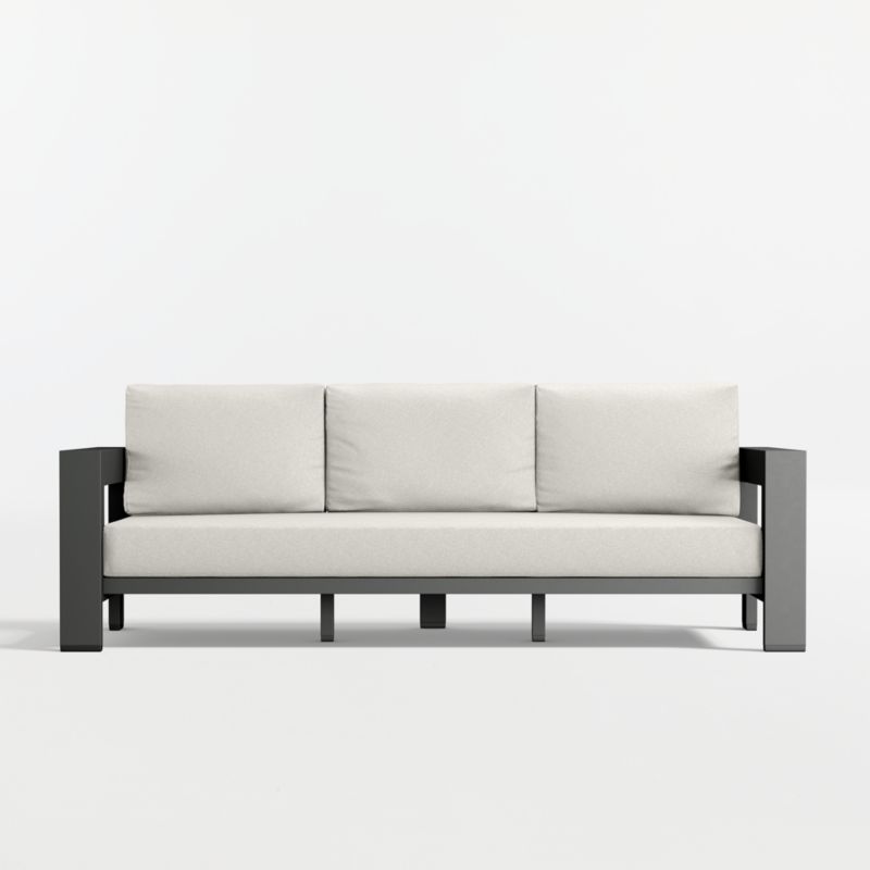 Well-made, great-looking and super comfortable. Our Walker outdoor collection is a customer favorite that checks all the boxes. Built to stand up to the elements, the sofa is made of rustproof aluminum treated with a durable and stylish matte powdercoat finish. Cushions in your color choice of stain-resistant Sunbrella fabric let you sink back and relax in deep-seated comfort. A modern classic, Walker is designed with architectural lines, wide armrests and recessed detailing.