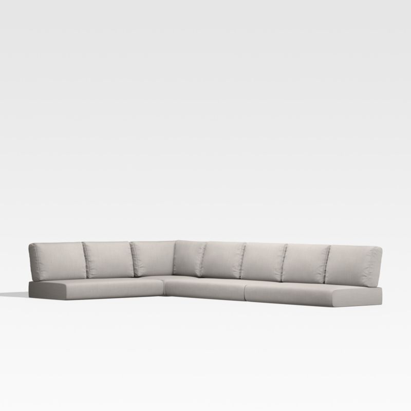 Add plush comfort and modern style to your Walker L-shaped, four-piece outdoor sectional sofa with boxy seat and back cushions in ash brown. Covered in highly durable, water and stain-resistant Sunbrella fabric, the cushions are neatly tailored with zippers that help to ventilate and facilitate drying.