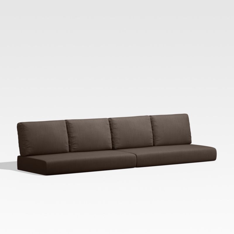 Add plush comfort and modern style to your Walker outdoor loveseat sectional with boxy seat and back cushions in java brown. Covered in highly durable, water and stain-resistant Sunbrella fabric, the cushions are neatly tailored with zippers that help to ventilate and facilitate drying.