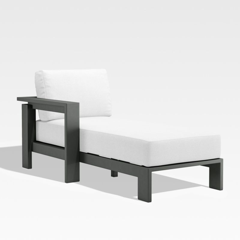 • Walker Right Arm Metal Outdoor Chaise with Canvas White Cushions