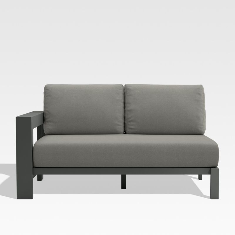 Walker Left Arm Metal Outdoor Loveseat with Canvas Charcoal Sunbrella Cushions