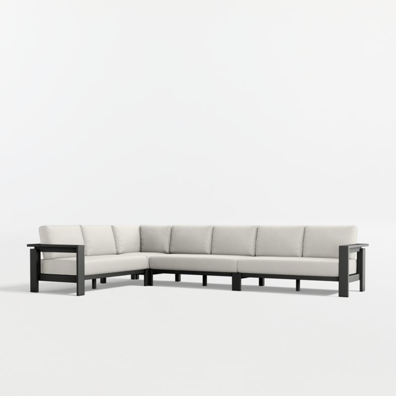 Well-made, great-looking and super comfortable. Our Walker outdoor sectional sofa collection is a customer favorite that checks all the boxes. Built to stand up to the elements, the sectional is made of rustproof aluminum treated with a durable and stylish matte powdercoat finish. Cushions in your color choice of stain-resistant Sunbrella fabric let you sink back and relax in deep-seated comfort. A modern classic, Walker is designed with architectural lines, wide armrests and recessed detailing.