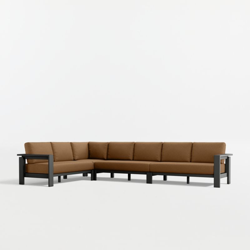 Well-made, great-looking and super comfortable. Our Walker outdoor sectional sofa collection is a customer favorite that checks all the boxes. Built to stand up to the elements, the sectional is made of rustproof aluminum treated with a durable and stylish matte powdercoat finish. Cushions in your color choice of stain-resistant Sunbrella fabric let you sink back and relax in deep-seated comfort. A modern classic, Walker is designed with architectural lines, wide armrests and recessed detailing.