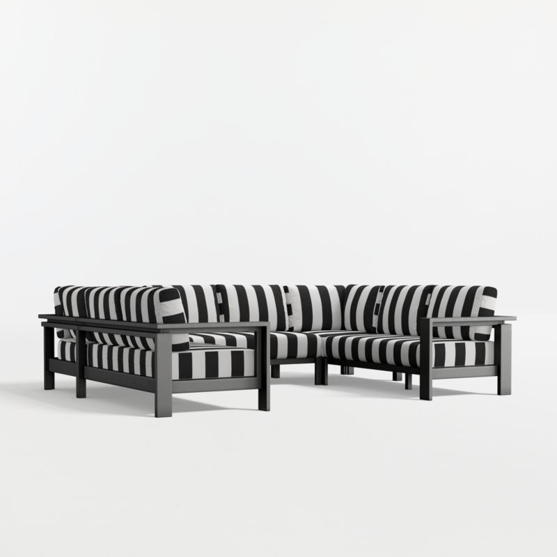 • View Walker Metal 5-Piece Outdoor Sectional Sofa with Black and White Cabana Stripe Sunbrella ® Cushions - image 8 of 10