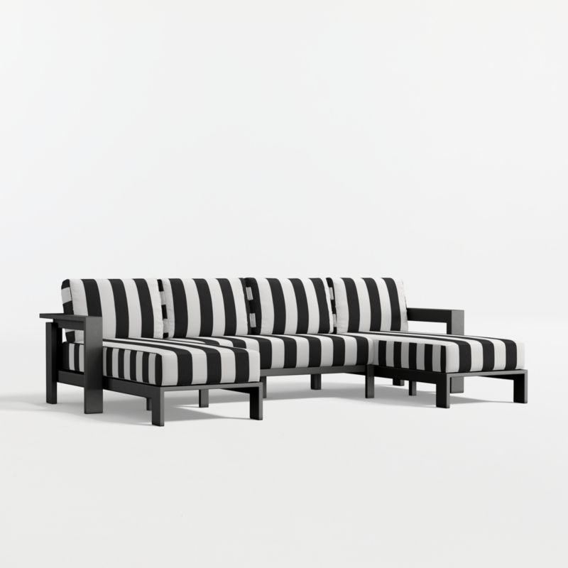 Walker Metal Double-Chaise Outdoor U-Shaped Sectional Sofa with Black and White Cabana Stripe Sunbrella ® Cushions