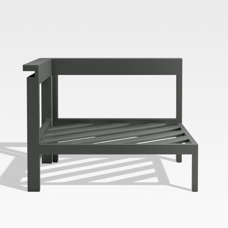 Sink back into the deep-seated, softly cushioned comfort of our Walker sectional collection. Made of aluminum finished in dark grey, the corner chair features recessed detailing and architectural lines. For an extra layer of comfort add on boxy cushions covered in weather-resistant Sunbrella fabric (sold separately). The Walker corner chair is a Crate & Barrel exclusive.
