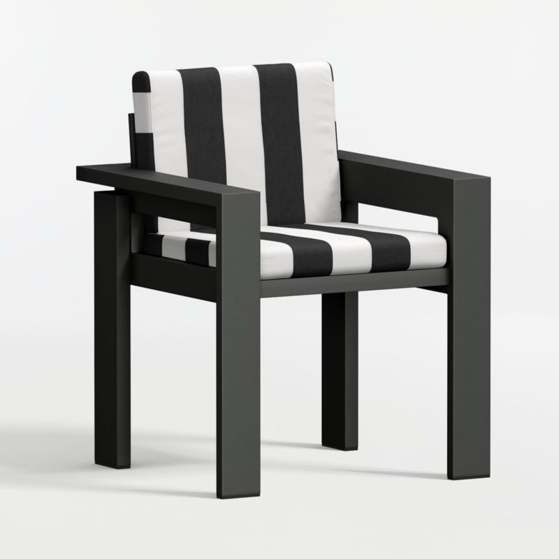 Walker Metal Outdoor Dining Armchair with Black and White Cabana Stripe Sunbrella ® Cushions