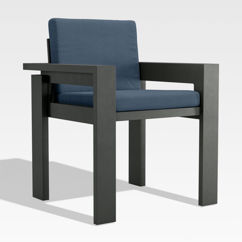 Walker Metal Outdoor Dining Armchair with Cast Harbor Blue Sunbrella ® Cushions